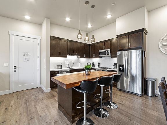 The best top floor, 3 bedroom 2.5 bath, corner unit in Sage Creek, offering peace, quiet, views, and elevator access. A fully furnished vacation rental property, that feels like home. Tall vaulted ceilings, a gas fireplace, high end appliances, large laundry room, luxurious primary suite, and sleeping space for 14 people. Treat yourself to Moab's hospitality at the southern end of town. Two Hot Tubs, a split style pool heated year round brings in the red rock decor, with a waterfall over one of the hot tubs.