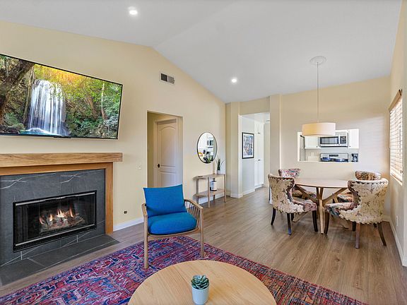 Comes fully furnished as pictured. Large and bright freshly painted and remodeled 2 bed 2 bath condo in super quiet gated community with newer stainless steel kitchen appliances in heart of Tustin. Brand new hardwood floors throughout and brand new completely redone guest bathroom and master bedroom vanity. This unit has no one above or below and sits above a private attached 2 car garage with lots of shelving. Directly off the front door is a large deck plenty large for outdoor furniture and features a propane gas BBQ. Walk through the front door to a spacious and open living space featuring high ceilings and a large balcony providing lots of light. Living room windows have high end custom wood blinds. Laundry room off hallway with washer/dryer. Kitchen is freshly painted with a large picture window over sink and includes newer stainless steel refrig., oven, microwave, & dishwasher. Large master bedroom with large balcony featuring master bath w/ brand new double vanity, high ceilings, & two closets. Good size guest bedroom with built in shelves directly across hallway from guest bathroom. Rental includes use of community pool and hot tub. 1 month to 1 year lease, 1 month security deposit, no dogs, no smoking, owner pays all utilities including internet (except electricity) on 1 to 6 month leases. On 2nd month of any lease tenant would start paying for electricity. No dogs, no smoking.