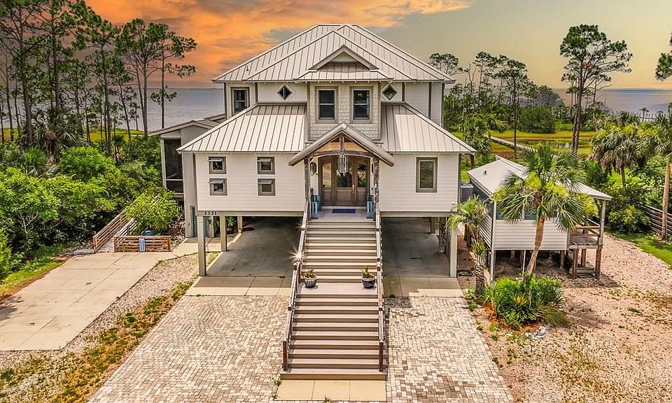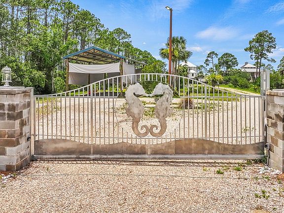 STUNNING ST JOE BAY ESTATE!! "Gracie O'Malley"-a one of kind waterfront sanctuary on almost 3.5 private acres along the shoreline of St Joe Bay. This gated oasis blends rustic elegance with a beautiful backdrop of the bay, offering a rare opportunity to own one of the most breathtaking waterfront properties on Florida's Forgotten Coast. Pass through the custom-crafted seahorse gate & discover a home intentionally designed to harmonize with the natural beauty that surrounds it. Inside, nearly every room captures panoramic bay views that shift with the light throughout the day. The grand living room is anchored by soaring cathedral ceilings, post and beam wood beams, & floor-to-ceiling windows with a cozy fireplace that creates a welcoming gathering space year-round. Step outside onto the expansive deck or enjoy the oversized screened porch—complete with its own fireplace—for stunning sunset dinners & peaceful mornings. The gourmet kitchen is a chef's dream with a spacious center island & thoughtful flow for entertaining. An open staircase leads to a versatile loft—ideal as an office, gym, or 4th bedroom. The upper level is dedicated to the primary suite, offering a tranquil retreat with its own fireplace, private bayfront balcony, spa-like bathroom & an oversized walk-in closet. An elevator provides access to all three levels & the ground level includes a covered space perfect for parking, raised garden beds, a fish cleaning station and H/C outdoor shower. Launch your kayak directly from your private dock and glide to the nearby scallop beds, or enjoy paddle boarding across the calm, clear waters of the bay. With two parcels included, this property invites endless possibilities. Whether you're dreaming of a commercial venture, event venue, or expanded residential footprint, the mixed-use capabilities offer flexibility to bring your vision to life—all just moments from the water. Call for your private tour & LIVE THE BEACH LIFE!