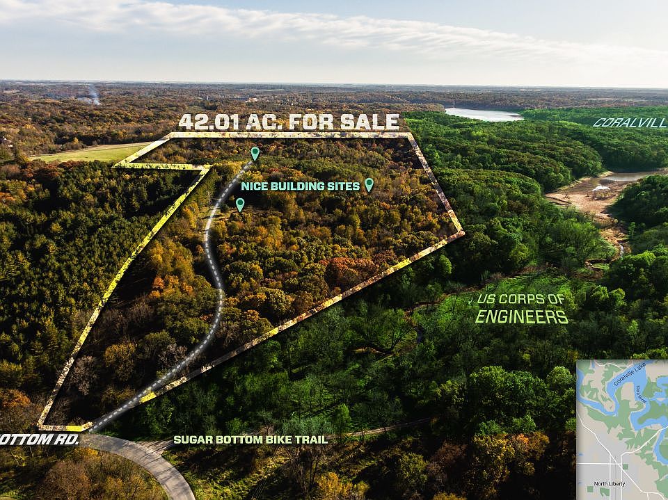 Prime location with secluded building sites on an all timber tract bordering Coralville Reservoir. Sugar Bottom Road frontage, lots of wildlife, great location. - Please contact listing agent Ben Harshyne.