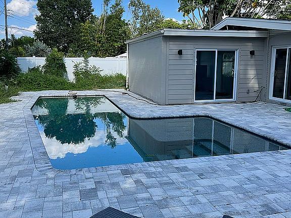 This totally remodeled home in 2021 complete with new open floor plan all Terrazo floors throughout new kitchen new bathroom with glass shower insulted sun room to add sg footage hurricane glass doors and a new lap pool built in backyard with deck dedicated underground service great for a vacation or rental property or full time residence on a great block all mid century modern reservation