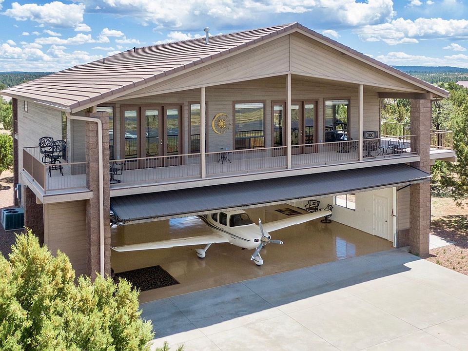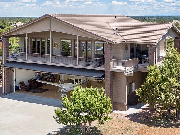 Experience Mogollon Airpark living at its best! Amazing views of the runway and the Mogollon Rim from every room and the wrap around deck. Pilots and aviation enthusiasts, you will never miss a take-off or landing from this sought-after center field location! Upscale appliances, Graber window coverings, hardware floors, custom cabinetry, huge laundry room, tile bathrooms, massive jetted tub in master bath and gorgeous granite finishes through-out this beautiful move-in ready home. Four bedrooms including a private guest quarters off the hangar or make it your man-cave/workshop/hobby area. Huge hangar with a 45'w x 12'h Schweiss bi-fold door, two car garage area and your own personal 6 passenger elevator to deliver you to your living quarters!