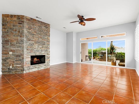 Distinctive and Classic Elegance is this "Trillion" Model in Sun Lakes Country Club , NOW ALL NEW INTERIOR PAINT.....NEW PICS May 5.....a 55+ Community without Mello Roos.....2, Bedrooms and Den....with a Wonderful Northern Mountain VIEW, Large FRONT Patio with Peaceful Hill View.......Very OPEN Kitchen, Dining and Living Room with Fireplace, with Special Stone.......Granite Counters in Kitchen, with neutral backsplash, dramatic Guest Bath with exquisite Granite....Den has double doors.....Crown Moulding....Primary Bedroom and Bath with Northern Mountain Views...Bath has Granite Counters and Walk-in Wardrobe....Floors are Tile and Laminate....., newer Water Heater, separate laundry with sink...Wood Shutters, Fans.....Patio has builtin BBQ with granite counter....Waterfall....2-car garage with golf cart area....Complex has 2 18-hole Golf Courses....pro shop, 2 Restaurants, Pools, Clubhouses with outstanding gym equipment, Tennis and Pickle Ball Courts, Pool Room, RV Club...HOA includes Cable/Internet Service....