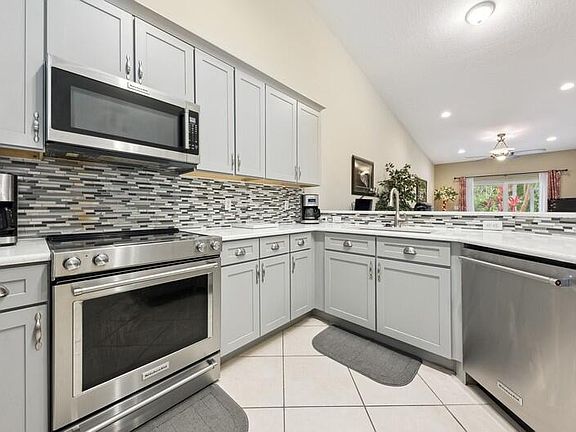 TASTEFULLY UPDATED - Furnished or Unfurnished is this gorgeous 2 bedrooms, den, 1 car garage, double driveway is the home you've been looking for. Tiled thruout, vaulted ceiling, beautiful selection of paint colors; totally remodeled kitchen w/high end appliances, soft close drawers, granite countertops, plus more! Master-bathroom renovated with new shower stall, frameless door, double sink. Guest bathroom updated. All appliances are newer. Hurricane impact glass on all openings. Screened covered patio, screen at front door entry. Garage equipped with electric car charging outlet, overhead hanging storage, attic storage, pull down stairs. Pets welcome! All sizes and fees are approx. Baywinds offers lots of activities and amenities. Baywinds close to everything Amenities include Exercise room, workout room, sauna, show, billiards, library, conference room, media, card, arts and craft room. heated swimming pools, aqua trac pool, tennis courts, pickleball courts, shuffleboard, bocci courts. Various clubs, 24 hour manned gate, HOA fees also include premium cable channels, LAN line, high speed internet, ADT security.