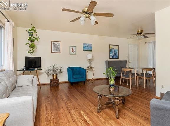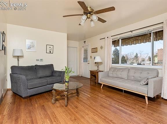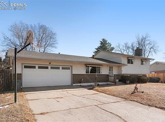 Welcome home. This spacious 4 bedroom, 3 bath, tri level walk out with attached 2 car garage is ready for new owners! Nestled on a quiet street in an established neighborhood this spacious gem boasts over 1,800 square feet of living space, and features a walk-out lower level into an over-sized private backyard. As you enter, you're greeted by beautiful wood floors throughout the main level and upstairs. The large windows in the front allow for great natural light and wonderful views of Pikes Peak. The kitchen offers a gas stove and is attached to the dining room with walk out sliding glass door to your covered patio. The upstairs features 3 bedrooms and 2 baths. The full bath has lots of room for storage and the main bedroom features an attached 3/4 bath with great natural light and bedroom closet space. The lower level has newer carpet, large windows for natural light and a warm cozy fireplace. The fourth bedroom is located on the lower level complete with private 3/4 bath and walk out entrance to the back yard. The private backyard has a shed with electricity, a large covered patio and a beautiful raised garden area. There is a activity set and even room for a above ground pool when the weather warms up! Conveniently located close to hiking, shopping, schools, and so much more, you must make this home a MUST SEE. This beautiful home oozes pride in home ownership and won't last long. Schedule your private showing today!