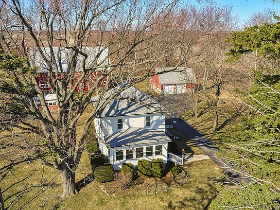 Come out to the peace and quiet of the country to this lovely 5 acre farmette! Enjoy gorgeous country views for miles. The older farm house has a kitchen with updated cabinets, tile floor, newer stainless steel appliances and a big walk in pantry. The first floor also features a living room, dining room, closet half bath and beautiful original woodwork. Enjoy the views from the fully enclosed front porch. Upstairs you will find 3 bedrooms and a full bathroom. The home features vinyl siding, new gutters, new hot water heater, newer windows through out and an updated kitchen. Outside boasts a 2 car garage w/ walk up loft, chicken coop, shed and barn. The 2 car garage has electric and a huge walk up loft area perfect for a workshop or extra storage. Plus a large barn w/ silo, 2 stall areas, and a huge hay loft. All this plus 5 usable acres and a chicken coop.