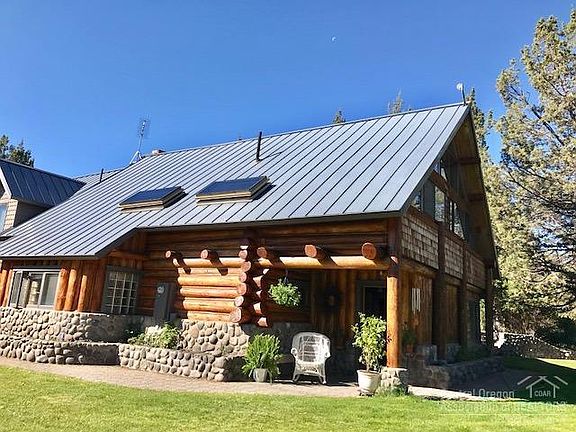 Stunning log home with beautiful rock work and large patio done in pavers. Lg stone BBQ in patio area. Inside, the great room has soaring ceilings, skylights and lots of light. Home is heated with a wood furnace and wood stove. Built in 1977 and remodeled/added upstairs in 1993. Kitchen and dining area open to great room. 1/2 acre pond is great for swimming and is filled with bass. Large school or music room upstairs as well as spacious office and four bedrooms plus a loft. Two full baths on each floor. Shop is 2460 sf, insulated and heated with a wood stove. 220 wiring, air compressor plumbed throughout and down to home's garage. Shop has hoist and lift and a separate garage. 2 acre fenced pasture with irrigation. The property is 9.2 acres and has three apple one pear and one plum tree, six raised beds, raspberry bushes as well as a garden shed & chicken coop. Property has a WIFI tower that brings in $400/mo. Avion Water District for house and Central Oregon Irrigation for exterior with 2 acres of water rights. Septic has two drain fields.