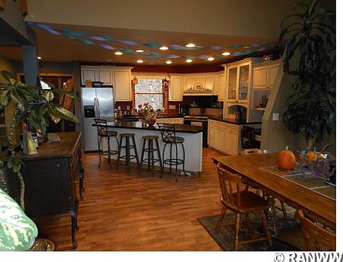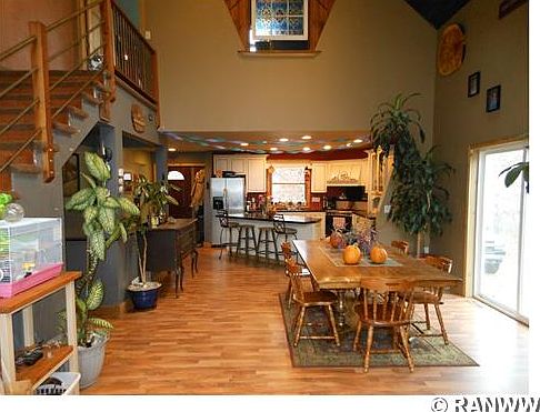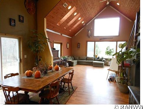 Rural yet contemporary in this 4 bedroom home with full partially finished basement and nice open floor plan flows together nicely for comfortable living space. Lots of privacy with 42+ acre site with Clam River meandering through and a path to rivers edge where you can enjoy family fun around the fire pit or swimming! 5.7 acres is across the river.
