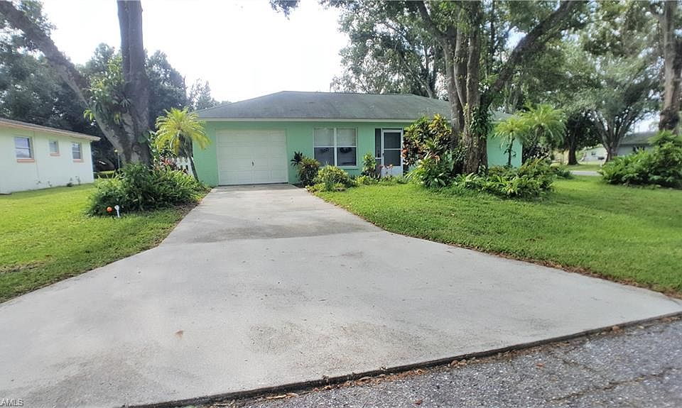 What a fantastic starter home, this charming 2 bed 1 bath home is nestled under mature oaks trees on a corner lot. When you walk into the home you're greeted by an open and bright floor plan. Kitchen features granite counter tops. Berber carpet in the living room and main bedroom, second bedroom features wood laminate flooring. Both bedrooms offer walk-in closets. The large lanai is tiled and enclosed with vinyl windows, the portable spa is included. Washer and dryer are included in located in the garage. The garage floor is painted. The very large backyard is fenced with 4ft chainlink fence. Fort Myers Shores offers a community boat ramp just minutes from this home! THIS IS A MUST SEE HOME AND AT THIS PRICE HURRY BEFORE IT'S GONE!!