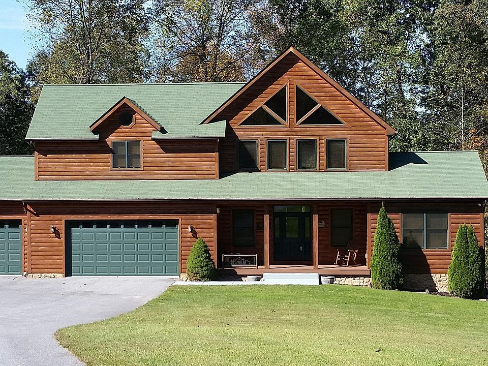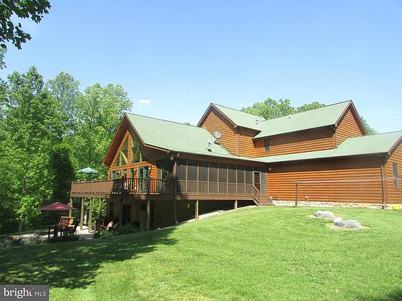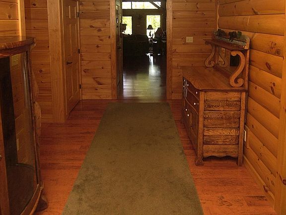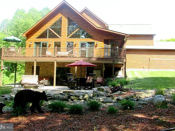 Everyday you will feel like you are on vacation in the very unique log sided home with wood beams and a great open floor plan. Spacious and open gourmet kitchen w/granite tops, hickory cabinets, Heartland commercial quality 6 burner dual fuel stove with warmer drawer, conventional and convection electric oven, wine cooler, and loads of cabinet space. Beautiful hickory engineered hardwood in the great room / dining area, kitchen, pantry, hallway and loft. Nice size pantry with extra freezer. Primary bedroom on upper level has sitting area, the 2nd of two propane fireplaces, (first propane fireplace is in the living room), a mini frig, and full bath; you'll love the jetted tub & unique shower and a huge custom walk in closet. Lower level has rec room, a bar with a microwave and mini refrigerator, spacious full bath, a bedroom and a den or guest bedroom. There's also another room in the back that would be a great workout area or just to hide away. Walk out to large patio under the deck that leads to the Koi pond. Lower level could possibly work as an In-law unit. This home has a Generac generator, Rinnai tankless water heater, gutter guards, custom blinds, a screened porch and a Trex deck, plus so much more. This home is furnished and rugs and furnishings can convey. Backs to Forest protection land. Just of few minutes to Rt 140. It's so close but you'll feel miles away in your own private world.