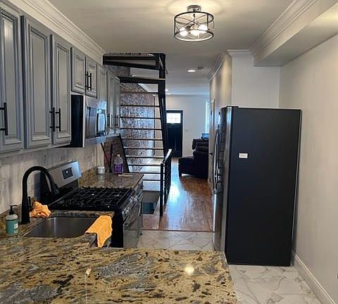 Charming house in the Patterson Park Neighborhood two blocks away from the Park. Recently Renovated 2 Bedroom 2 1/2 Bathroom with a small room in the basement that can be used as an office or storage room. Exposed Brick, Metal Floating Stairs, Hardwood Floors throughout, Central Air/ Heat, Washer/Dryer, Dishwasher, New Appliances, Fenced in backyard with space for parking or lounge area. 1mile to Canton/Fells Point and surrounding John Hopkins Hospitals. Close to major Highways, Bus stops on the block, close to Baltimore Harbor and great food options in the city. Owner pays for water. Renter is responsible for gas and electric. Cats are welcome. No dogs, No smoking. 12 month lease.