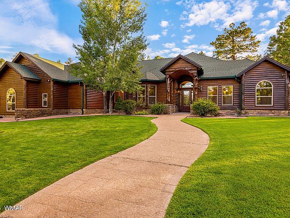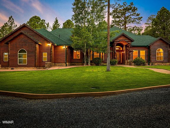 Welcome to your private retreat in the heart of Lakeside, AZ, with horse privileges on a fully fenced FIVE acres with TRUE pride of ownership! This stunning 5-bedroom, 3-bathroom custom home offers 3,217 SqFt of luxurious living with solar-powered entry gates. Enjoy year-round mountain living surrounded by tall pines, lush landscaping, & modern comforts. Inside, the home features a grand foyer, open-concept family & dining areas, & a chef's kitchen w/ granite countertops, stainless steel appliances, natural wood cabinetry, and a large island with seating. A dedicated home office & spacious laundry room add to the functionality. The primary suite is a private haven with a jacuzzi tub, walk-in tile shower, and dual vanities. Plenty of storage with dual closets, his and hers. READ MORE Guests can enjoy a 2nd ensuite for privacy and space. Nice appointed with a bathroom including tub shower and custom vanity. Two additional bedrooms have access to a guest bath with dual vanities, tub shower, and a patio door. Perfect for all guests to easily access.