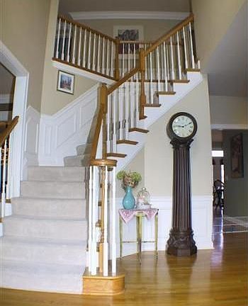 Dramatic 2 story foyer w/hardwood floors and extensive crown molding. Formal living room has double crown molding as does the dining room which also has a chair rail. First floor den has hardwood floors, crown molding, French doors and lots of built-ins.