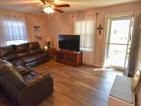 Welcome to this adorable 2 bedroom, 1 bath starter home with great 2.5 car garage and unfinished basement. A great living room with easy care laminate floor offers plenty of room for your sectional couch. Chances are that you will spend a lot of time preparing meals in the large eat-in kitchen with dishwasher, microwave, range oven, 2 ceiling fans and room for your dining table. From the kitchen you’ll access a large deck great for entertaining your friends and fully fenced for pets or privacy. There are 2 bedrooms with new carpet and nicely updated hall bath with new surround and faucet on the tub/shower. A partial unfinished basement is great for storage. The awesome 2.5 car detached garage is functional and practical with a concrete floor, new roof and will park your cars, serve as storage and or a big workshop. Per seller: Furnace 2020, AC Motor 2021, Roof 2022, Carpet 2022 and Laminate flooring 2020, most all windows replacement.