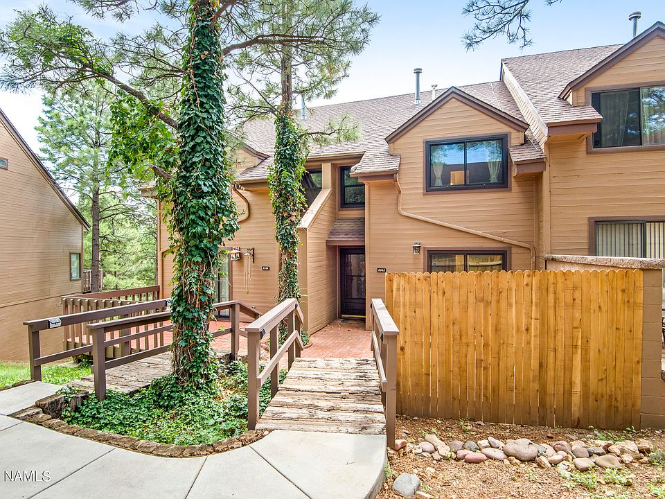 Step inside to discover recent high quality upgrades that enhance both style and functionality. From the stunning new floors that lead you through the home, to the modern kitchen equipped with new appliances, every detail has been meticulously attended to. The lower-level bathroom has been completely renewed, while energy-efficient Anderson windows flood the space with... natural light. Stay comfortable year-round with the luxury of air conditioning - a rare find in this locale. Step out onto the deck and be mesmerized by the sweeping views of the verdant forest and the manicured golf course. Marvel at the regular visits from elk, deer, and other wildlife, all while enjoying the serene backdrop of nature. Parking is effortless with three designated spaces. The detached garage, outdoor spot, and assigned parking across the street ensure ample space for your vehicles and guests'. Embrace a low-maintenance lifestyle, granting you the freedom to explore Flagstaff and immerse yourself in the golfing scene during the city's finest seasons. This townhome isn't just a property; it's an invitation to experience the ultimate in elegance and nature. Don't miss this chance to own a slice of Flagstaff paradise. Reach out today to seize this captivating opportunity!
