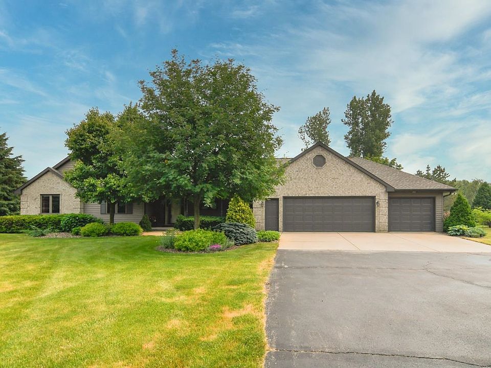 Fantastic 3 bedroom ranch in the East De Pere school district set on a 2.86 lot close to the Fox River Trail and elementary school. This well maintained home features a spacious kitchen with granite counters, raised snack bar and sliding doors leading to the covered patio overlooking the big backyard! The living room features a vaulted ceiling and a cozy wood burning fireplace. In the primary suite you'll find a spacious walk-in closet and en suite with granite counters, double sinks and shower stall. 1st floor laundry. Nice 3 car garage with the 3rd stall having an overhead door in both the front and back. Lower level is stubbed for a bathroom and could be easily finished to add more living space. New roof in 2022