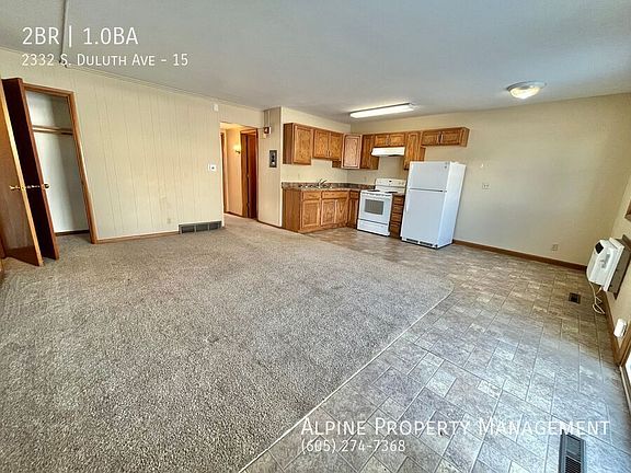 Call today to schedule a tour of this ground floor 2 bedroom apartment just blocks away from Augustana at 2332 S. Duluth Ave #15!! Open-concept floor plan with private entrance. The kitchen comes equipped with refrigerator, stove and has an adjacent dining area. Two large storage closets off the living room and linen storage outside the bathroom. The master bedroom features two more coat closets. Tub shower combo in the bathroom and wall air conditioner provided. - Renter's insurance required - $65 application fee per adult - $775 security deposit - $125 monthly utility fee covers all utilities(gas, electric, water, garbage) and lawn/snow care - Pet Friendly(2 max) and non-smoking - Section 8 accepted if your voucher meets the marketed rent amount - Alpine Benefits included for $25/month extra (see website for full details) Professionally leased and managed by Alpine Property Management Ground Floor Apartment Linen/Closet Storage Non Smoking On Site Laundry Online Tenant Portal Pet Friendly Private Entrance Stove Tenant Pays $125.00 Monthly Utiity Reimbursement Fee Which Covers The Gas Electric Water And Garbage Tenant Pays A $125.00 Monthly Utility Reimbursement Fee That Covers The Gas Electric Water Garbage Lawn And Snow Care. Tub Shower Wall Air Conditioner