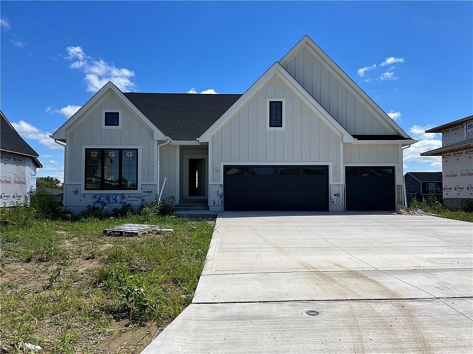 Everest II ranch plan with Scandinavian exterior look! Main floor has hard surface flooring throughout main living areas, large kitchen with island, stainless steel appliances, quartz countertops, white cabinets, pantry, beautiful tile backsplash. The Great room has gas fireplace and vaulted ceiling. There are three bedrooms on the main floor. The primary suite has a large bedroom w trey ceiling, spacious walk-in closet & bathroom w dual sinks. Outside the dining area is a covered, 12'x12' deck. The basement finish with another family room, wet bar, 4th bedroom and full bathroom. All information obtained from Seller and public records.