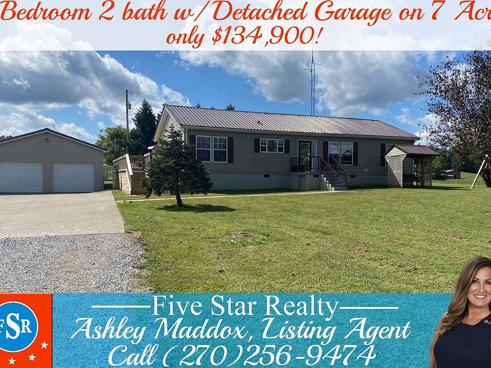 These views you get in Horse Branch, KY are simply beautiful! This manufactured home sits on 7ac. +/- of cleared level ground is like new and move-in ready! Features include 3 bedrooms, 2 bathrooms one being a master, spacious open concept living room/kitchen with a huge island and plenty of cabinet and countertop space! Outside bonuses aside from the privacy include a double detached garage, front porch and a deck off of the kitchen for grilling out plus an added sunroom! You can't ask for anything more than this one has to offer at only $134,900! Must be pre-approved to make an appointment! Ask me how to make this one yours!