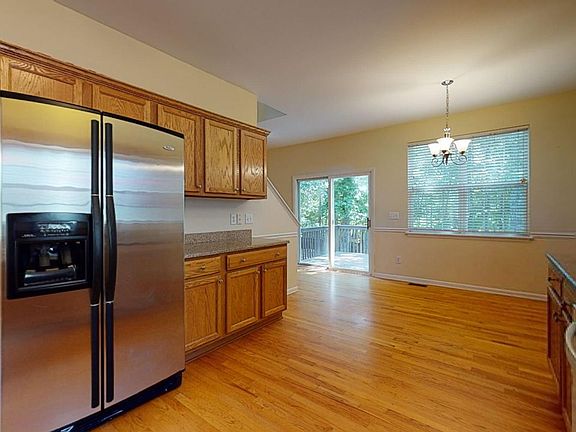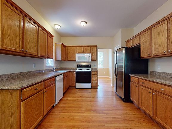 All fresh paint in this charming 3 BR with large owners suite plus bonus room, 2 1/2 BA home with hard wood floors on entire first floor, granite counter top, deck, private fenced flat back yard that backs up to trees and a field where neighbors gather to play ball, lots of storage, neighborhood pool and clubhouse, two car garage. Walk to shops, schools, YMCA. Pets welcome. Fresh paint on mailbox, new garage door and smoke detectors Small dogs and cats negotiable with pet fee Renter pays utilities, no smoking/no vaping Laundry room available Air conditioning Deck Hardwood floors on first floor Dishwasher Two car garage