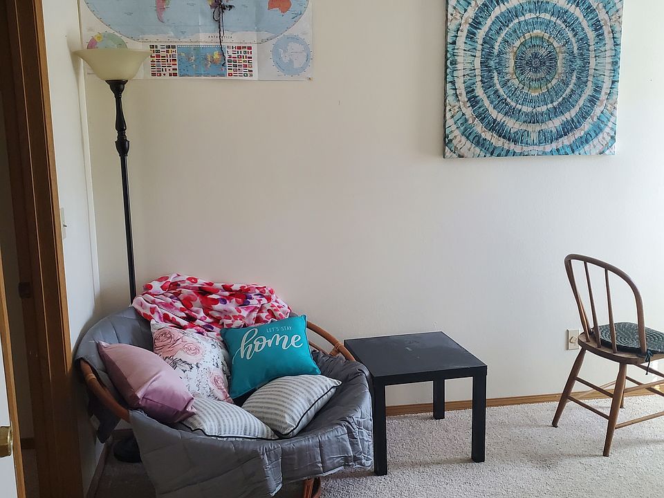 Private room with double door entrance, a walk-in closet, and outdoor deck. Full bathroom on the same floor to be shared with any (albeit few) guests. Just outside the bedroom is the main floor's great room and kitchen. Room comes furnished with a bed (2yrs old) and the rest of the house is furnished. Mail comes in a safe locked box and the front door has an automatic lock. Fine print: no pantry and limited storage space. Lease is month by month. Pay for first and last month before moving in via PayPal and then on the day of moving in monthly until moving out. Renter is responsible for anything they break, but communication is required about the fixing plan. Renter is not responsible for maintenence costs and if something wears down, communication is required. If the renter decides to call a service, they will be responsible for any fees from such a service. No smoking, no pets, no recreational drugs, no alcohol. No open flames allowed. Guests should leave within a respectable time (with exceptions being communicated).