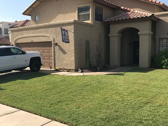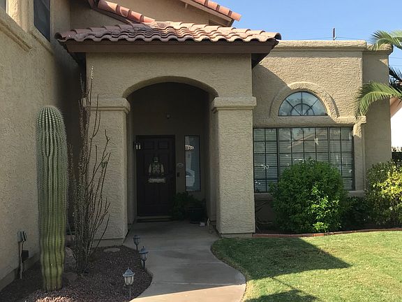 This house is a two story, 4 bedroom, 2.5 bath home on a cul-de-sac in a wonderful family neighborhood. The home has large bedrooms, 10 foot ceilings with crown molding and a fireplace with a slate hearth in the living room/dining room, tile throughout the downstairs, laminate flooring on the stairs, and carpet upstairs. The kitchen has been renovated with cherry shaker style cabinets, stainless steel appliances and granite countertops with slate backsplash. The half bath has been renovated as well. The hot water heater was just replaced in August of 2019. The two air conditioning units were serviced in June 2019. The attached garage is a two car garage with additional storage space, shelving, and cabinets. There is a covered back porch, pool with pop up cleaning system, beautiful landscaping and several fruit trees. This is a great house for raising a family and for gathering with family and friends. This home is in the Crane School District. We are willing to pay up to 3% commission to any realtor who brings us a buyer.