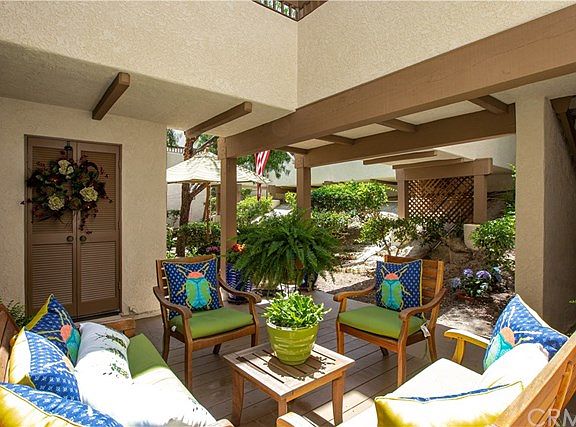 Enjoy spectacular PANORAMIC VIEWS of the golf course from this EXQUISITELY REMODELED lower-level home in this highly sought-after gated community. As you enter this gorgeous home, you will be greeted by a picture perfect view of the golf course, trees and hills through the windows in the living room. Newer designer upgrades throughout. The bright and cheerful kitchen is appointed with newly refaced cabinets with self-closing drawers, stainless steel Professional series appliances, and cofferred ceiling with recessed lights and a cozy breakfast nook overlooking a serene front porch. The open adjoining dining area and living room feature a stone fireplace with a custom built half-wall shelving. Master bedroom opens out to the back patio overlooking the golf course. Master bath is upgraded with beautiful natural stone and a professionally customized walk-in closet. Other recent upgrades feature plantation shutters, newer water heater, ceiling fans, crown molding, recessed lights on dimmers, wide baseboards, newer fixtures, custom paint, and so much more. Additional entertaining space in the front patio with raised decking and barbeque area. Enjoy panoramic golf course view from the enclosed back patio with access to walking path with convenient pedestrian door access. Within steps to lake Mission Viejo. 1-car detached garage with added storage and 1 covered carport. Entire complex has been updated with new paint, railings, exterior beams. Must see to appreciate!