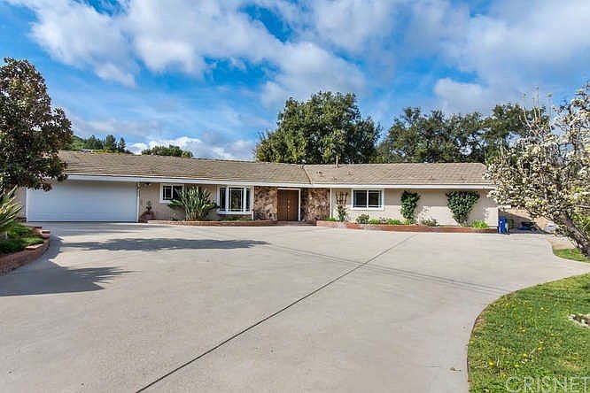 Classic California Ranch Home In Newhall's Happy Valley Community is designed to handle all of your BOATS, RV's, TRAILERS and TOYS in the very generous paved parking area and still have plenty of room left over for your guest's cars. Parking area estimated to be approximately 3,500 square feet - buyer to verify. This gorgeous, well-maintained property is an entertainer's delight featuring a wide-open floor plan designed to promote great flow between the great room, dining area, kitchen and back yard pool area. The PERMITTED ADDITION which includes a bedroom, bath, sitting area and private entrances was designed to be used as SEPARATE LIVE-IN QUARTERS for a maid, guests, or grandma! The kitchen features granite counters, stainless steel appliances, two ovens, wine chiller fridge and an island that doubles as a serving and eating center. The huge pebblectec-style pool and spa are an invitation to jump in and cool off. The covered patio with built-in barbecue looks out to the pool, garden and lawn areas. The two and a half car garage has additional storage and pedestrian access as well as a remote controlled single roll up door. The large master suite, has a cedar-lined walk in closet, updated bath featuring a steam shower and separate soaking tub. All bedrooms have mirrored doors and hall access. Large safe in the hall closet is included if the buyer wants it. The home is on a private flag lot and shares the main driveway on an easement with other homes.