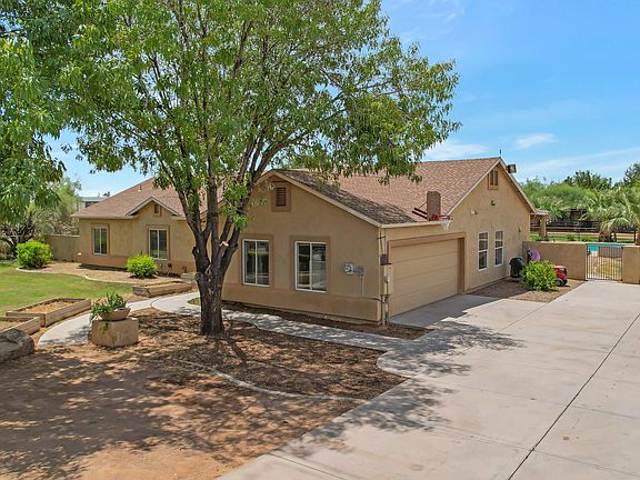GIDDY-UP, Cowboys, and cowgirls! Or, Welcome business owners needing space to breathe. Discover this stunning 5-bedroom, 3-bathroom home set on nearly an acre of land. NO HOA. With a vast open floor plan and soaring 10-foot ceilings, this residence is adorned with custom tile flooring, laminate, and carpet in all of the right places. The expansive kitchen is a chef's dream, equipped with abundant custom cabinetry and a large walk-in pantry for all your storage needs and more. Outside, you'll find a corral and stall, perfect for equestrian enthusiasts. Dip in your sparkling swimming pool for summer fun. This home offers the rare luxury of space and functionality in every detail. Two new water heaters and new HVAC system installed in past 2 (HVAC) and 3 (WH) years.