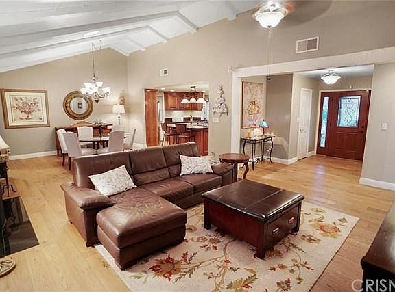 Single Story Happy Valley Home with Apartment Over the Garage! 4 Bedroom 4 Bathroom 2801 Sq. Ft. Celebrity House Regularly Seen on TV as Fornells Home in NCIS. Corner Lot with White Picket Fence and Lush Landscaping for Lots of Curb Appeal. Wood type Flooring Begins at Formal Entry and Continues Through Most of the Home. Living Room with Vaulted Ceiling, Fireplace, Ceiling Fan and Sliding Glass Doors to the Patio. Living Room is Open to the Dining Room and Kitchen, Perfect for Entertaining! Kitchen features Granite Counters and Expansive Island/Breakfast Bar, 5 Burner Gas Cooktop, Microwave, Oven, Ample Cabinets with Glass Doors and a Garden Window. Separate Family Room with Corner Fireplace, Recessed Lights, Ceiling Fan and Sliding Glass Doors to the Yard. Master Bedroom Suite with Two Large Closets, Ceiling Fan and Access to the Yard. Two Additional Bedrooms and Full Guest Bathroom located off Hallway. APARTMENT with Spacious Bedroom Suite with Large Closet and Seating Area, Full Bathroom with Soaking Tub and Wal-In Shower, Living Room with Sliding Glass Doors to the Front Balcony, Kitchen Features Granite Counters, Gas Range and Eating Area. Fully Landscaped Backyard with Expansive Covered Brick Patio, Outdoor Kitchen, Potting Shed, Pergola, Water Feature and Koi Pond. Dual Zoned AC. Two Car Garage. NO HOA, NO MELLO ROOS, So Many Amenities. A Must See to Believe!