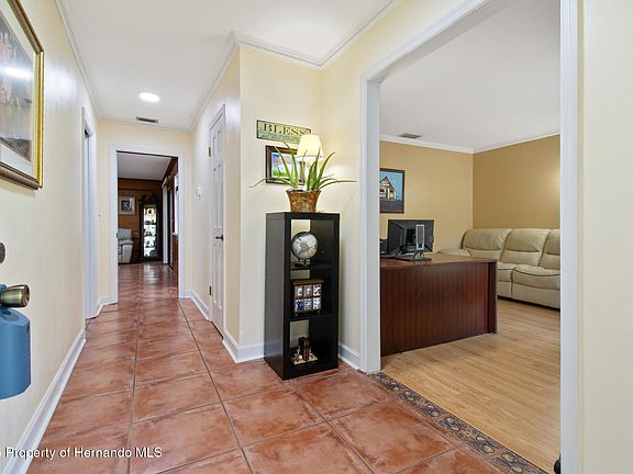 Golf Course Living at Its Finest! Pool Home on the 18th Tee! NEW ROOF (2022), NEW WINDOWS, TONS OF UPDATES! Welcome to 23327 Christian Circle, a stunning 4-bedroom, 3-bathroom pool home nestled on a spacious .80-acre lot in the highly sought-after Brooksville Country Club community. Perfectly positioned right on the 18th tee box, this home offers unbeatable panoramic views of the golf course—an absolute dream for any golf enthusiast! From the moment you arrive, you'll notice the ample parking, attached 2-car garage, and dedicated 30-amp RV hookup—ideal for those with a boat or RV. Step inside to find a thoughtfully designed layout with a blend of comfort, space, and style.The updated kitchen features quartz countertops, stainless steel appliances, a charming tile backsplash, and a cozy breakfast nook that overlooks the sparkling pool. You'll also enjoy a formal dining room for entertaining and a large den/home office for work or hobbies. The heart of the home is the oversized living room, complete with built-in shelving, beautiful wood-paneled walls, and a wood-burning fireplace that can be converted to gas. A true gathering space! Retreat to the spacious primary suite offering private pool access, a sitting area, a recently updated en-suite bathroom with double vanities and a walk-in shower. Not to mention...an impressive 143 sq ft custom walk-in closet/dressing room. The home's layout provides privacy and flexibility, with pocket doors separating guest quarters, and a fourth bedroom with private garage entry and full bath—perfect for visitors, in-laws, or even a private office setup. Step outside to your fully enclosed pool area, complete with outdoor shower and plenty of room to create the outdoor kitchen or lounge area of your dreams—all while enjoying uninterrupted views of the lush fairways. Fully furnished option available!! Move-in ready and meticulously maintained!! This is a rare opportunity to own a beautiful home with top-tier views in one of Brooksville's most desirable golf course communities. Schedule your private tour today and make every day feel like a resort getaway!!