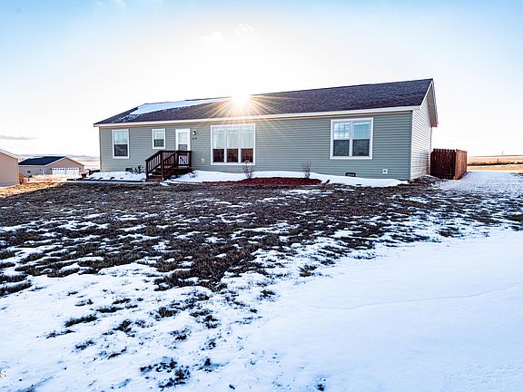 3 bedroom home resting on shy acre in small neighborhood on outskirts of Watford City. Walk into open concept living encompassing living room, dining room, & kitchen. Kitchen boasts center island, pantry, abundant beautiful cabinets, & window overlooking backyard. Extra cabinets & counter add to dining room as well as sliding door to fenced backyard. Master suite flaunts walk in closet, garden tub, shower, double sinks/mirrors & separate toilet area. 2 large bedrooms at opposite end of house as well as unique nook area, full bathroom & utility/mud room. Unique nook area accommodates counter, shelving, under cabinets, & window w/view of front yard. Sizable utility room possesses cabinets over washer/dryer & cabinetry perfect for a mudroom w/cubbies & room to hang coats, next to door leading outside. Full bathroom conveniently located next to the utility room for quick entrance from outside. Part of backyard has full wooden fence, for your privacy, w/gates on either side, & concrete patio off dining room. Big front yard w/paved driveway & lots of room for parking. There is also landscaping & flowers to bring you color during bloom times. No neighbors to the back of you.