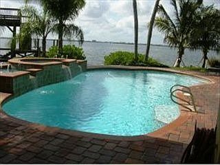 Heroic sunsets are just the prologue to the legend that describes this masterfully constructed waterfront manor located in a privileged setting of Brookside Drive. Located between the causeways at the end of a quiet street, with 765 feet on the Indian River and a panoramic southern view - this large, one story house with its refined landscape has everything one could imagine in a waterfront paradise. The home has been completely remodeled in 2007/2010 Featuring an open floor plan, Grande entry way flows into a grand living room with a 14 foot vaulted wooden ceiling and magnificent views of the Indian River, dining areas flow into a large family room featuring elegant 20 inch imported porcelain tile laid on the diagonal with a minimal grout line. Views of the river are available from every room. Dream Kitchen. Granite counters, large center island, breakfast counter, built in Kitchen Aid stainless steel refrigerator, convection / microwave oven set, Cook top with 5 burners and touch activation; River front dining area plus a formal dining room. Master Suite. Double door entry; two walk in closets; sitting area; two sets of sliding doors with river views; master bath with custom shower (5 shower heads), jetted tub, Kohler above counter vessels, and a separate water closet. All bedrooms and baths feature wall insulation to keep the house quiet. Guest suite. Large bedroom with sitting area and dressing area; Bathroom with shower and dual sinks; Inviting view of pool and river. Patio. Quiet and private but with a magnificent southern view of the Indian River that goes on for miles down to the Melbourne Causeway in the distance - enjoy both sunrises and sunsets from this 200 foot wide back yard on the river. Pool and outdoor hot shower; Outside Kitchen with large gas grill, riverfront entertaining will be a delight at 2333 Brookside Drive.
