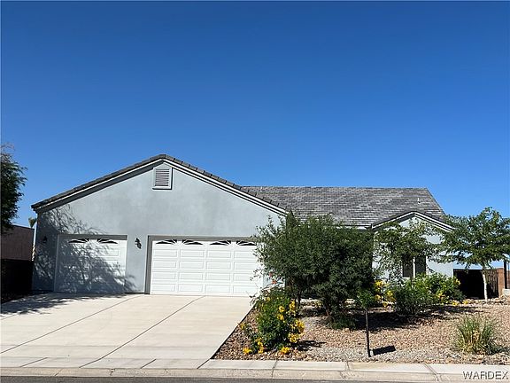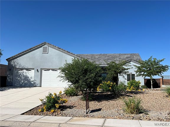 Beautiful newer home in the Arroyo Vista Community. Come check out this 3-bedroom 2 bath home with heavy iron front door, high ceilings and split floor plan. Very modern kitchen with granite and backsplash with high end cabinetry and matching appliances. The living area is super spacious with a sliding door that walks out to the rear covered patio. Large master bedroom and master bedroom with granite dual sinks, tiled walk-in shower and his/hers closets. The guest bedrooms are on the other side of the home for maximum privacy. Huge 3 car boat deep garage has epoxy floors and 9-foot garage doors. Pool size back yard is private and has a view of the black mountains in the distance. This is the perfect community for families, retired people or a second home. Large community pool, kids' playground and jungle gym, basketball court, volleyball area and beautiful grass field for pets and sports. Close to all amenities and not far from the Colorado River and fun and excitement of the Laughlin Casinos.