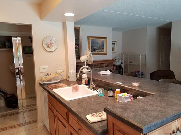Turn key and move-in ready south facing main floor condo unit. Great location in south Fargo. Totally gutted and redone with oversize ceramic tile, ceramic walk-in shower, new cabinets, countertops, lighting. Wall removed for a nice open design living area. Washer and dryer in unit! Fireplace, single detached garage, and condo fees of only $100/month.Covenants say no pets
