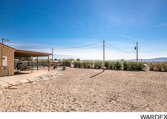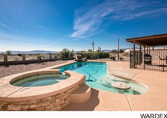 Great Fort Mohave location on oversized large lot with great views of local mountains. Large family room for entertaining and for football night! Living room is open to kitchen or can be a large dining area too! Granite kitchen counter tops with slider to large covered patio opens out to beautiful pool with rock water feature and spa. Master bedroom is spacious with full bath. Home has laminate flooring which makes for easy care. Plenty of parking for RV and Boats. Pet friendly yard. Solar Home.