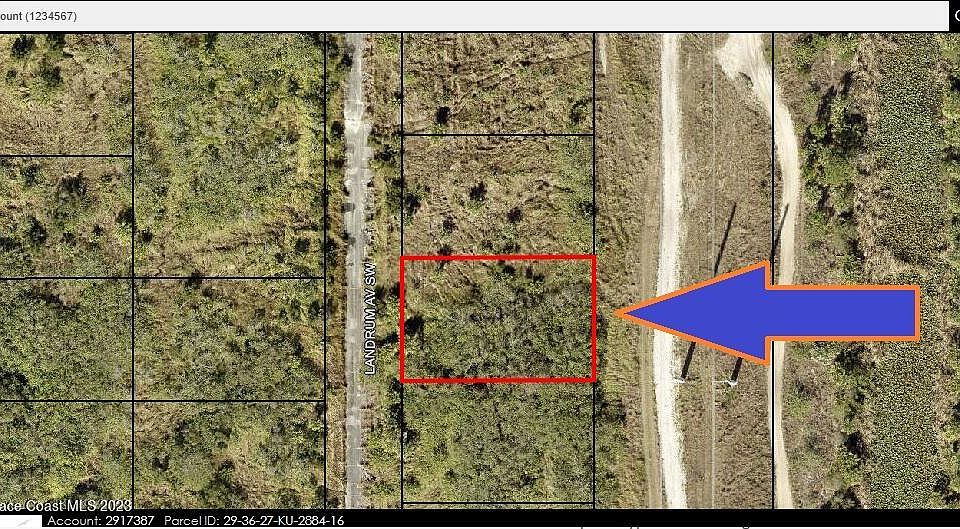 0.23 acre vacant lot with a City right-of-way easement in the back available in Port Malabar Unit #52 of SW Palm Bay. There are no utilities present at this lot or in this area; so the lot and the unit are not buildable at the present time. The seller has no knowledge of the property and makes no representations except for title. From Exit #176 of I-95 go west on Palm Bay Road NE. Turn left on Minton Road and proceed south for 3.3 miles. turn right on Jupiter Boulevard SW and left on DeGroodt Road SW. Proceed south for 2.5 miles and turn right on J.A.Bombardier Boulevard. Proceed west for 2.6 miles, turn left onto Carter Avenue SW, Left on Kentucky Drive SW, left on Atwell Street SW which turns right and becomes Landrum Avenue SW. The lot will be on your right.