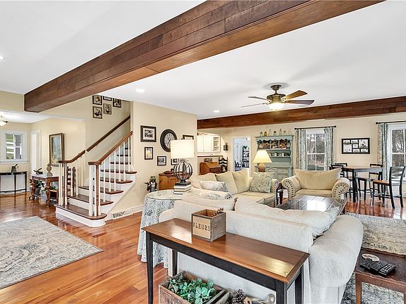 OWN A PIECE OF UPPER ST CLAIR HISTORY...The Lesnett/Tustin Farm is sited perfectly on 2.4 acre bucolic homesite. This farmhouse style home features a guest cottage, barn w/3 garages & APARTMENT SUITABLE FOR CONTRACTOR'S HOME OFFICE. Seasons will be enjoyed on the 52-foot covered wrap-around veranda with a GAS FP. The colossal family room is sized to accommodate an array of furniture, yet still radiates warmth & features a gas FP, & many windows to enjoy the sanctuary outside. Formal dining room w/bay window, former parlor now a convenient 1st floor den. Master suite with, yet another gas FP, two walk-in closets & modern bath w/whirlpool & tiled shower. Convenient 2nd floor laundry room includes W/D. 3rd floor teen suite. Attention sports enthusiasts...30x19 daylight LL gameroom is ready for sporting events & powder room. 1st fl Mudroom 18x12 approx. w/ laundry hookups NEW WINDOWS, 2 HVAC SYSTEMS, 220 ELECTRICAL. Major renovations/addition 2010.