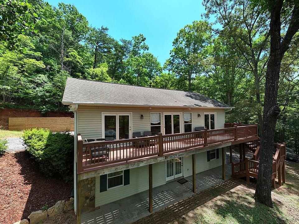 Tucked away in the peaceful Northeast Georgia mountains, this fully furnished, beautifully updated cabin-style home is the kind of place that instantly makes you exhale. Set on 2.29 unrestricted acres, it offers the perfect blend of privacy, comfort, and mountain charm—with seasonal winter views of Brasstown Bald reminding you why you chose mountain living in the first place. Inside, the home feels warm and welcoming from the moment you step in. A stone fireplace anchors the living space, complemented by rich wood floors and fresh new carpet that make it feel both cozy and refreshed. The kitchen is spacious and functional, featuring newer appliances just a year old—ready for everything from quiet mornings with coffee to hosting family and friends. Every detail has been thoughtfully cared for, including a new HVAC system and whole-house dehumidifier to keep the home comfortable year-round. The HVAC is already set up for separate thermostat control upstairs and down, giving you flexibility for future expansion. Step outside onto the large deck and take in the crisp mountain air—whether it's morning birdsong, fall colors, or peaceful evenings under the stars. Downstairs, the unfinished basement opens the door to endless possibilities: finish it for extra living space, create a workshop, or simply enjoy the storage. A basement garage adds convenience and functionality. Recent upgrades include a new roof, concrete driveway, fencing, retaining wall with improved drainage, and refreshed landscaping that adds to the home's inviting curb appeal. With no HOA and no restrictions, this property offers true freedom—ideal for full-time living, a mountain getaway, or a short-term rental opportunity. Located just minutes from hiking trails, Lake Chatuge, and charming mountain towns, this home isn't place to live—it's a place to slow down, reconnect, and truly enjoy mountain life. Opportunities like this don't come along often.