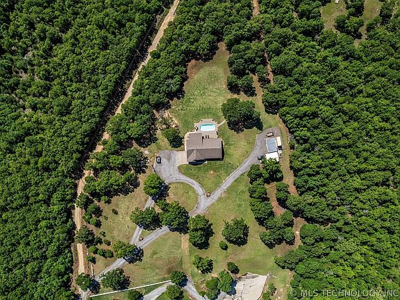 Fantastic Private Hilltop setting with wooded area around Property & Fabulous views to the West. Marvelous Fiberglass Pool, outdoor entertaining area, huge covered patio with remote control screening and a Tranquil Hot Tub/ Spa area. Single level Home totally renovated with a contemporary style 12 - 13 years ago, all sheetrock, wiring, Lighting, electrical, plumbing, appliances, fans, counters, flooring, geo-thermal HVAC system, insulated windows & Doors, roofing have been replaced by current owners. Over 5 Acre Lot per courthouse data. Per appraiser approximately 2,480 SF. A Must see Home & Property !! Anderson Rural School K-8th with Sand Springs High School. Easy access to Keystone Lake, Sand Springs, Downtown Tulsa and Major Medical Services.
