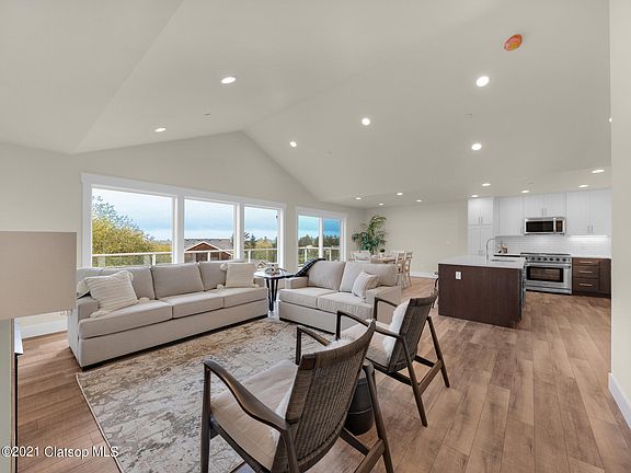 A Brand New Beauty! Head for upscale Thompson Falls high above the surf for ocean vistas, painted sunsets & shimmering lights by night. Built to maximize views, the smart reverse layout is multigenerational & family friendly with a living area, bedroom & full bath on each level. Entertain in grand style with high end finishes, a well appointed chef's kitchen, plenty of room to spread out, green space on the south side & across the street and one of the biggest & best ocean view decks in all of Seaside. The kicker? An insulated & finished 4 car garage for toys & hobbies. Beaucoup Upgrades, Brand New & She is Calling Your Name. Hustle!