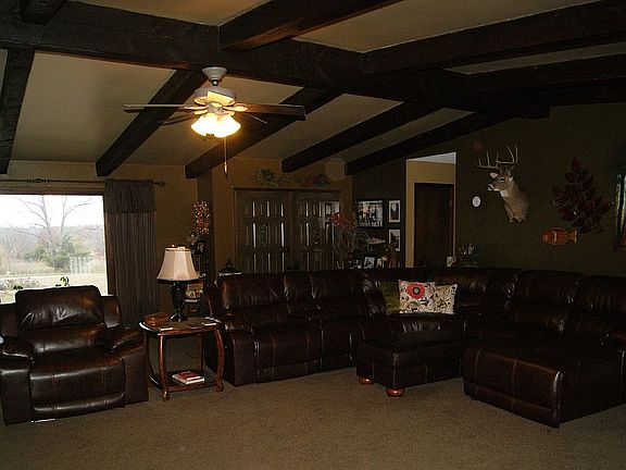 We have a beautiful country home on 28 acres. We are on a dead end road that opens to a beautiful valley. This home is a very large ranch with 2700 sq ft on the main floor. The living room is 25x25 and has a cathedral ceiling, fireplace and a nice deck off the east side to view the pond. (very open) In the kitchen we have a very nice island, large refrigerator, electric stove top, double oven, tile floor(20"), glass (copper) back splash, nice oak cabinets and new counter tops. Its an open concept that leads to the dinning room area that has oak chair rail around the entire room. Off the dinning is a nice deck (all decks treated with deck-over) for having coffee in the mornings or watching the beautiful sun rise (I also feed the birds and so we get a lot of enjoyment watching them). There is also a mud room off the dinning/kitchen area. We have a very nice sized attached garage. The master bed room is very large(16x18) and has a master bath, double sinks, shower, and his and her closets. Room number 2 is also the same size as the master. It is very spacious with a nice large closet. Room number 3 is also a nice size but 11x14. All bedrooms have ceiling fans. Guest bathroom has a double sink with tub and shower. There is a nice large linen closet in the hallway. The half bath has a washer/dryer hook up (on the main floor). There is a landing area on the main floor that leads to the basement, in this space there is a large oak book shelf( built-in) and a office area. In the basement we have a gorgeous kitchen with oak cabinets, another washer/dryer hook up, lots of storage, a nice recreation room, 2 walk-out doors, tons of windows to view the pond, a fire place and a wood storage bend, a bar(awesome man cave), three nice size bedrooms with closets and a large bathroom, double sink and shower. We do not heat or cool the basement at all it stays at a great temp all year round. This home is ALL electric and is heated and cooled with a GEOTHERMAL unit. This unit is amazing and is an energy saver. . Outside we have a 3 acre pond with a dock for fishing or feeding the fish and a really cool zip-line tower. A fenced in garden area. We have two out buildings. One is a 30x40 shop and the other is a large barn with horse stalls, an unfinished loft and lots of concrete. attached to the huge shop you have a very large, fully enclosed chicken coop. The acreage runs to the south of the house and offers a smaller pond(for livestock) and some timber for hunting complete with an recently redone hunting shack. This is a must see property and has lots of perks! Located just outside of Butler city limits. Call to schedule a tour.