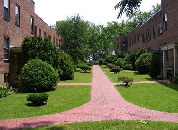 Rent includes heat, hot water, a one-car garage, and an extra storage room. The apartment has windows in the front and back which allow cool breezes, sunny rooms and nice views of the well-kept garden. This unit has additional small room that could be used as a dining area, office, or small bedroom. See website for photos. Garages and parking lots are set back from apartment windows. An expansive city park is adjacent with a basketball hoop, tennis court, swings and open green space. The apartment has hardwood floors. The smaller bedroom can be used as a den or study. The bath has a tub with a shower. There are five closets. There is a bright laundry facility in the building. Situated within a quiet residential neighborhood with tree-lined streets, in an excellent school district, near G.E., Ellis and Saint Clare s Hospitals and only twenty minutes from downtown Albany. 24-hour emergency maintenance. A full time Super lives on site. References and security deposit. Pet possible with written approval and pet deposit. Owner pays heat and hot water. Tenant pays for gas and electric.