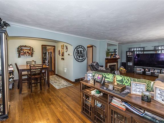 Impeccably updated and truly move-in ready, this charming home blends classic character with modern comfort. New vinyl siding in 2025. Other updates within the last few years include the bathrooms, kitchen, refinished original hardwood floors, replacement windows & roof, hot water tank and gazebo on the deck. The cozy living room showcases beautifully refinished original hardwood floors and a welcoming fireplace, creating an inviting space to relax or entertain. The formal dining area continues the timeless hardwood flooring, perfect for gatherings and special occasions. The kitchen features updated cabinetry, solid-surface countertops, a JennAir cooktop, and bright stainless-steel appliances, with a convenient breakfast bar enhancing both style and functionality. Sliding glass doors lead to a covered back deck, extending your living space outdoors. The spacious first-floor primary bedroom offers comfort and convenience, complete with a tastefully remodeled bathroom around the corner. A centrally located hallway provides ample linen and storage closets on the main level. Upstairs, you’ll find a versatile open area ideal for hobbies or a home office, along with an additional bedroom and half bath. The lower level includes approximately three-quarters finished recreational space—perfect for a media room, workout area, hobby space, or holiday entertaining—plus the added bonus of a full bathroom. This home is conveniently located minutes from John Carroll University, The Nature Center at Shaker Lakes, The Cleveland Museum of Arts, major hospitals, and much more. Because the Sellers have taken such care of the home, they are selling the property "AS-IS" and including a one year Home Warranty. Contact your favorite realtor for a private showing.