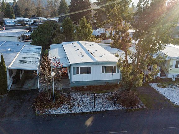 SELLER WILL GIVE $2000 TOWARDS PARK RENT AT CLOSING!! This cute and clean, 2 bedroom/2 full bath, plus sunroom is just what you are looking for with owner carry terms available! This home is spacious inside and out with an open floor plan that includes-large living room and formal dining area with oversized windows to enjoy the view of the lake and wildlife. The primary bedroom is extra special with en-suite and double closet. The second bedroom is complete with a Jack and Jill bathroom and separate entrance into the sunroom and covered patio. The backyard is a bonus with added space, beautiful flowers, wisteria and more. Roguelea Estates is a 55+ mobile home park that hugs up the amazing Rogue River. It features a private fishing lake with walking trails, picnic area, clubhouse, carwash and it is just a few blocks from the Sports Park that has basketball courts, pickleball courts and additional walking trails. Owner financing may be available with 50% down.