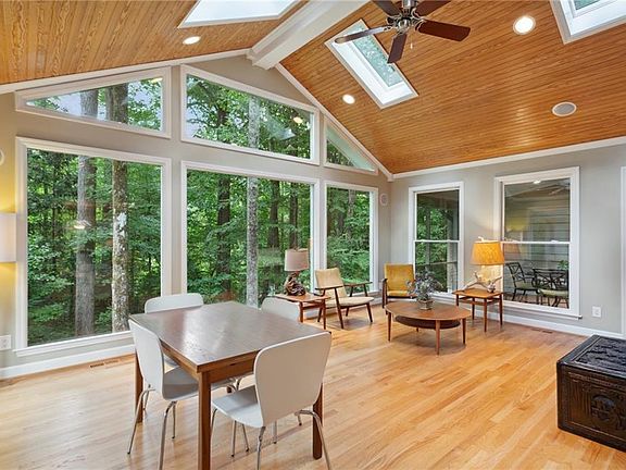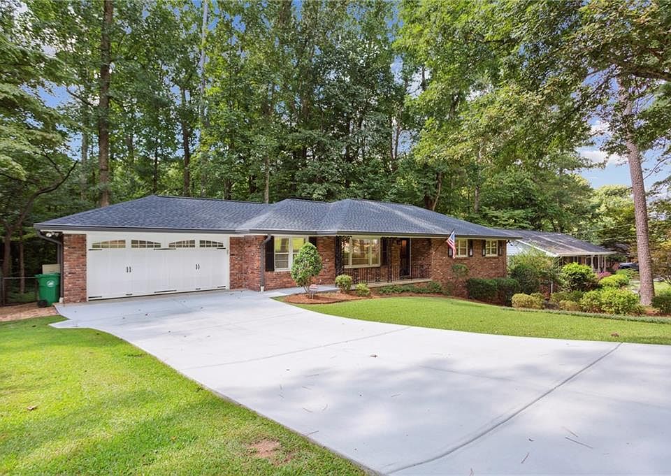 Beautifully renovated brick ranch located on one of the best streets in Sagamore Hills & Oak Grove Elementary. This is not your average Ranch. From the entry foyer you can see through to the private wooded backyard. Bright and open with Vaulted tongue & groove natural stained ceilings, sky lights, Tennessee River stone floor to ceiling fireplace, hardwood floors, oversized picture windows allow the natural light to flood the sunroom and owner's suite. Gorgeous kitchen with stained shaker style cabinets, glass tile backsplash, stainless appliances, Double oven 5 burner gas range, Granite countertops, breakfast bar open to the great room. Breakfast room or office off the kitchen. The expanded owner's suite with nicely appointed on suite bathroom, oversized shower and separate water closet. Owner's suite has direct access to the screened in porch. A perfect spot to enjoy a peaceful cup of coffee or a relaxing evening. Two car garage expanded to include mud room, workshop, and plenty of extra storage or could be a perfect exercise room. Relax in one of your two outdoor spaces, a peaceful screened in porch as well as a deck perfect for grilling. All this plus room to expand in the unfinished basement with a second laundry connection. This home is conveniently located near two active neighborhood swim and tennis clubs. Easy walk to Oak Grove Market or the Grove for Dinner. Minutes away from Henderson Middle, Lakeside High School, CDC, Emory, VA hospital, I-85 or I-285.