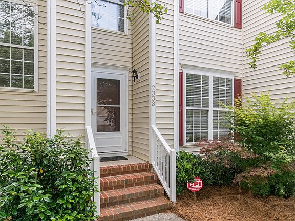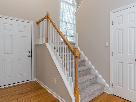 A SUCCESS STORY! It's all been done! Brand new carpet and paint throughout. Hardwood flooring in beautiful two-story entry, accented with picture windows and half-moon transoms. Arched pass-throughs to formal dining and kitchen. Wood-burning fireplace in family room. Pass-through window from family room to kitchen. Granite counters, center island plus oak cabinetry and planning desk in roomy eat-in kitchen. Main level laundry room and powder room. Spacious loft study or playroom. Vaulted ceilings in master bedroom and second bedroom. Garden tub plus separate shower, and handsome newer double vanity in master bath. Walk-in closet off master bath. Updated vanity in guest bath. Walk-in attic storage off second bedroom. Third bedroom with cute tchotchke built-ins between the studs. Large deck and wooded, fenced yard. Plenty of storage throughout, including under-stairs closet. Two-inch blinds throughout. Double garage with storage shelving. Fabulous location close to Crossroads Cary, and walkable to Bryarton Pool and Dillard Drive Schools!