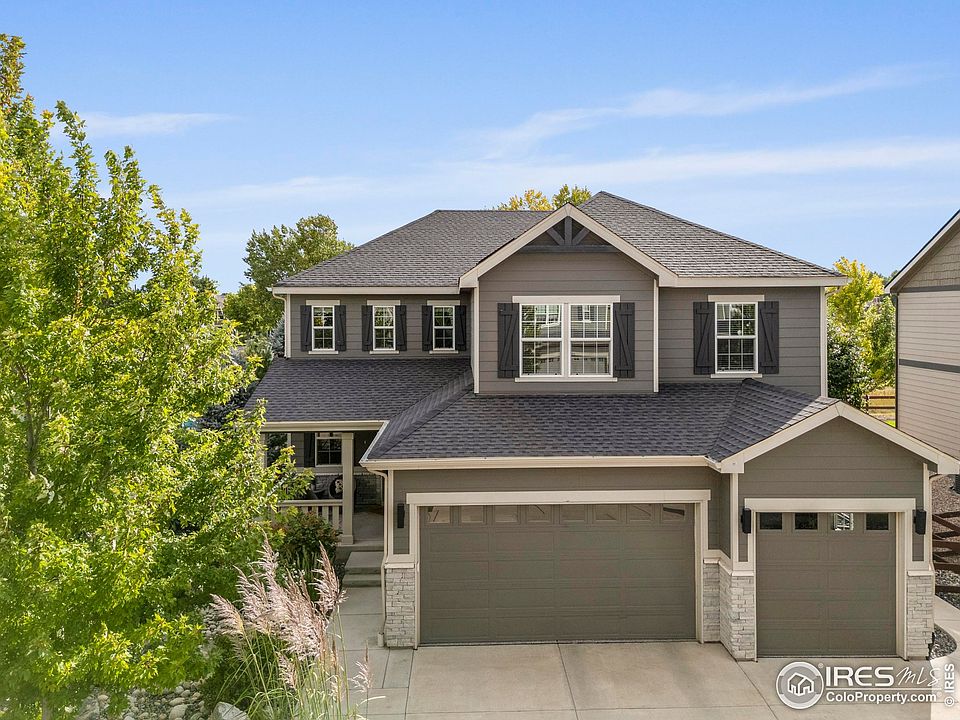 Welcome to your dream home where mountain views greet you each morning and luxury meets comfort at every turn. This stunning 6 bedroom 5 bathroom residence offers the perfect blend of sophisticated living and outdoor adventure. With no neighbor behind you and backing directly to a green belt and the new Mail Creek Trail that connects to Northern Colorado's entire trail system plus the new 5.3-acre city Tailwinds Park. The thoughtfully designed layout features a spacious main floor bedroom or office with a full bathroom, perfect for guests or those who prefer single-level living. Upstairs, discover 4 bedrooms and a large loft area ideal for relaxation or entertainment, while the primary suite boasts a 5-piece bathroom and two generous walk-in closets. The custom finished basement steals the show with its waterfall wet bar, tall beverage center, drawer dishwasher for glassware, and sonic ice machine. Custom landscaping frames this home beautifully, while plantation shutters add elegant charm throughout. The 3 car garage impresses with epoxy floors, built-ins, and overhead storage racks. 5 custom closets ensure organization is never an issue, and the electronic awning off the back patio provides instant shade for outdoor gatherings. Practical luxury continues with owned solar panels for energy efficiency and 2 basement storage spaces for all your treasures. Home has been pre-inspected, meticulously maintained, and priced to sell!