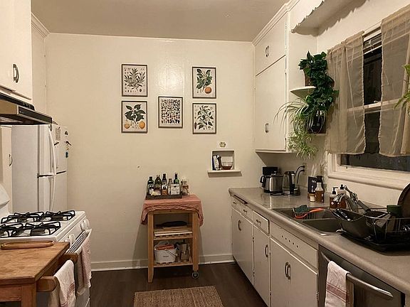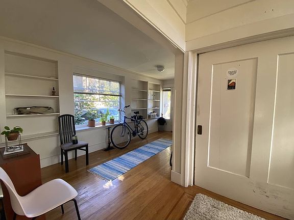 Two upstairs rooms in our South Berkeley 4br/2ba house are available on a month-to-month lease starting June 1 (may be available sooner if need be). Partially furnished or unfurnished as needed. WHITE ROOM The room (~10.5 x 11.5+) is on the southwest corner of the house, and gets a lot of light through its four windows. There is also a closet, and a nook that fits a desk that comes with the room. The mattress is available for free, or it can be removed if needed. The chest freezer shown in the pictures does not come with the room. The room is $1523.51 / month plus ~$100 utilities. To move in, first month's rent and a deposit (~one month's rent) are due. BLUE ROOM The room (~12 x 9+) is on the northwest corner of the house, has a closet and a private balcony with a doorway directly to the outside. The balcony comes with a table and chairs. It's perfect for an after-work glass of wine or reading in the sun. Plus it's directly in front of a plum tree that is bountiful in the summer! A small extra room under the stairwell is also nominally included, as an extra storage space / work-from-home office. It's spacious enough for a desk, chair and bookcase. The room is $1523.51 / month plus ~$100 utilities. To move in, first month's rent and a deposit (~one month's rent) are due. THE HOUSE The house is 4br / 2ba and equipped with a full kitchen, breakfast nook, living room, guest room, a dishwasher and washer/dryer. There are two fridges in the kitchen, and a small fridge in the living room for drinks, two full, shared bathrooms, one upstairs with a classic clawfoot tub with shower, and one downstairs with a modern enclosed shower. The backyard is huge and well taken care of by the landlord, with tables, chairs for lounging and even a BBQ, which we have taken ample advantage of during our time here. There is ample storage space in the attic, one free parking space in the driveway and available street parking. The house is a 15-minute walk from campus, a 10-minute walk from Berkeley Bowl and Whole Foods, 5-min walk from CVS, 5 minutes from multiple buslines, a 15/20-minute walk to Ashby Bart, and a 5-minute drive to Downtown Berkeley. Unfortunately, pets are not allowed. THE PEOPLE The house is normally occupied by four people. Two current residents are a former UCB PhD now working on a startup (M) and a UCB chemistry postdoc (M) who love to cook and hike. We like to hang out and have dinner together occasionally, though we're also pretty independent and out of the house much of the time. The two people moving out would love to stay, but they unfortunately (fortunately) have taken new jobs outside of the area. Viewings are available by request. Please send us an email with a few words about yourself. This a month-to-month lease. Owner pays water and garbage. Utilities average about $100 per month, split between the tenants