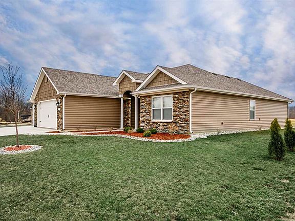 The current owners improvements are your gain! Barely lived in home on the golf course with pond view. 3 car garage, split bedroom floor plan, with curved arches dividing the rooms. 3 panel doors, custom cabinets in the kitchen with bonus for buyer of top of the line Kitchen Aid Chef refrigerator and stove. Walk-in pantry. Double bowl sinks with culture marble vanity tops in the master. Hardwood floor in foyer, large closets in the bedrooms with organizers (walk in master). You will enjoy the new covered patio with side walls and the fire pit overlooking the golf course and pond that was added after closing. Upgraded woodwork, 95% efficient furnace and 13 seer A/C. Water and golf course views!